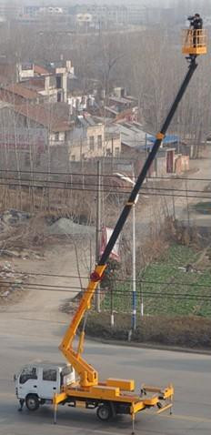 程力高空作業車在作業斗內和回轉座上均設有操縱裝置, 遠距離控制發動機的啟動/停止、高速/低速,采用電液比例閥控制臂的動作,平穩性好,工作臂可左、右360°連續旋轉,靠連桿機構自動維持作業槽水平,主泵出現故障時可操縱應急泵下降作業槽,具備夜間照明,可起吊重物。