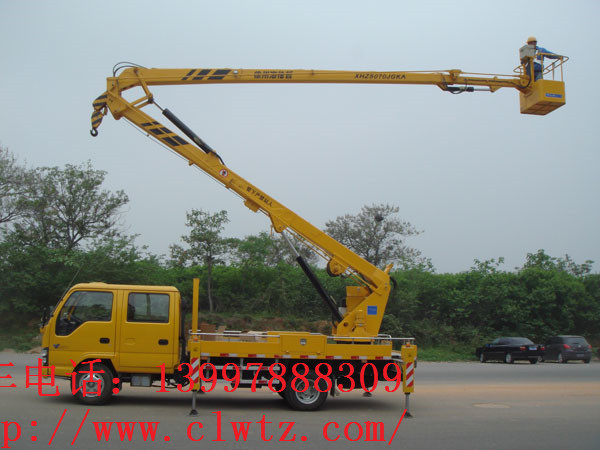 13.不準在升臂或工作斗內有人的情況下移動作業車,否則將引起人身傷亡事故。