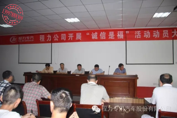 9月23日公司總經(jīng)理程阿羅參加公路養(yǎng)護(hù)車專業(yè)廠等專業(yè)廠《關(guān)于開展“誠信是?!被顒拥耐ㄖ返姆纸M學(xué)習(xí)和討論。會議學(xué)習(xí)了程力專汽黨字(2016)5號文件,《關(guān)于開展“誠信是福”活動的通知》。公司總經(jīng)理程阿羅強(qiáng)調(diào),要求大家端正思想,認(rèn)真學(xué)習(xí),提高認(rèn)識,樹立公司形象,加強(qiáng)典范經(jīng)營。同時強(qiáng)調(diào)經(jīng)濟(jì)上升,思想不滑坡。銷售承諾必須兌現(xiàn)。從源頭抓起,原材料不進(jìn)劣質(zhì)品,按照合同配置要求,進(jìn)行裝配,不偷工減料。嚴(yán)格生產(chǎn)工藝管理和流通過程管理。并強(qiáng)調(diào)執(zhí)行合同的嚴(yán)肅性,按時交貨,履行價(jià)格水準(zhǔn),做好售后服務(wù)工作,提高程力在市場的信譽(yù)度,打造好“程力威”馳名商標(biāo)品牌,讓“程力威”品牌深入每個經(jīng)營者和用戶的心中。